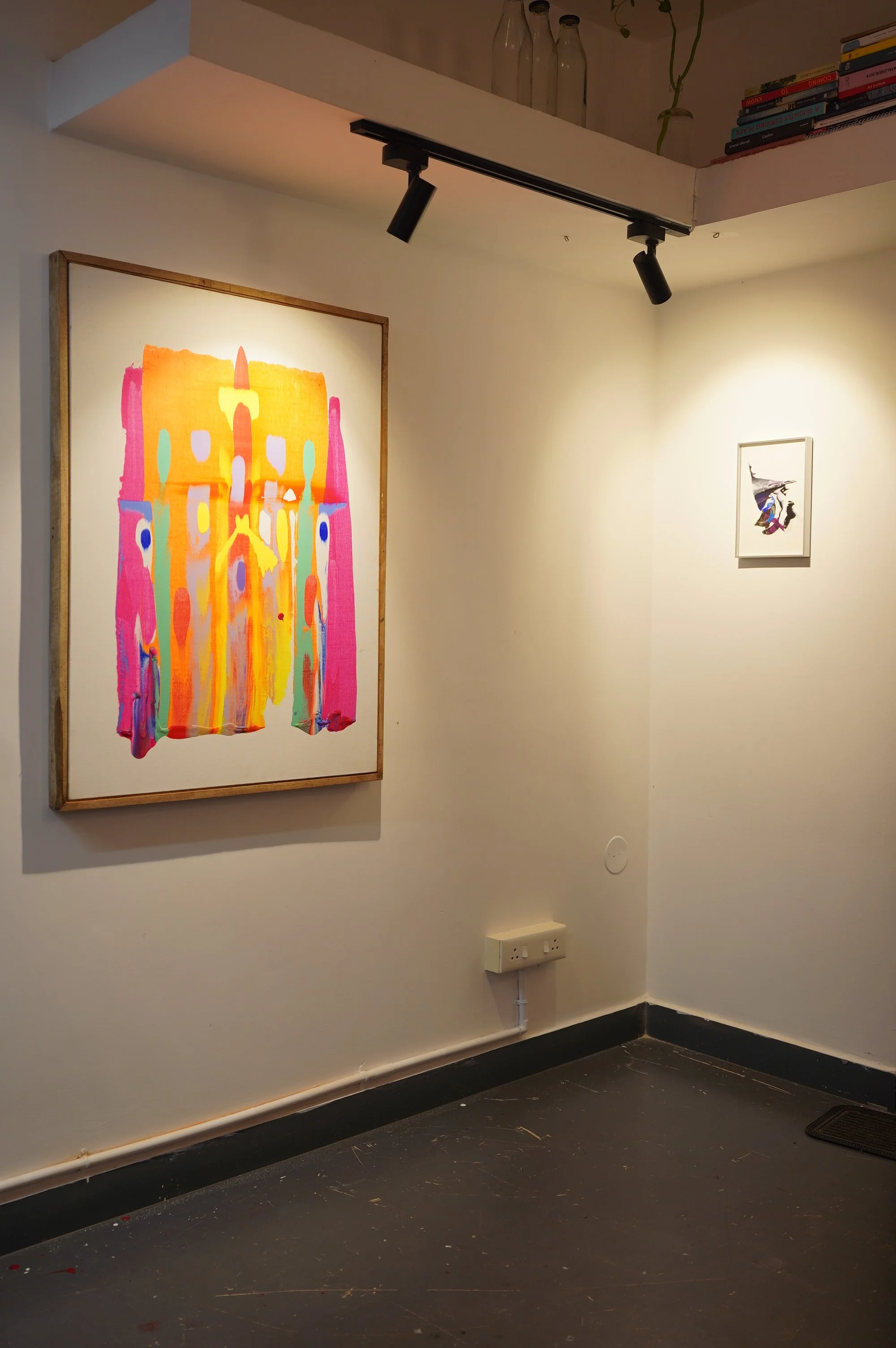 In the retrieval of ancient, fossil pasts and the abundance of the unknown expanse known as the universe, colour is used to determine time and age. It also produces wonder. Temperatures and climates stimulate colour as we see it in our eyes. The hue of light from stars and galaxies can tell us of their temperatures, distance and speed. It is mineral and an emotion, starlight and imagination. It is cerebral and celestial. Drawing from his experience as an art director working in film and television, and his work as a designer, Sud is interested in divining frameworks for colour that extend into light, temperature and texture. Sud treats colours as fields- static, magnetic, electric- where there is little reverence for order and a deep fascination for chaos and chance. In collapse, he extracts forms- temporary, wet, glitchy and slimy- using paint like it were to always stay wet and malleable. In Mihir Sud’s works colours work as material clues in all these registers and the spectrum of the mind. There is also muscle memory and instinctive urgency in play. Thick coats of paint layer to produce a lattice of distinct tones. It is then stretched and spilled, drawn and contained. They serve as codes, or incantations emerging from emotional states of the heart and mind. They become language and vibrations, the sound of the earth moving. Colour is used to make surreal yet keep tactile- to produce hues of technological, metallic futures and to excavate forms from the ancient, ammonite pasts.