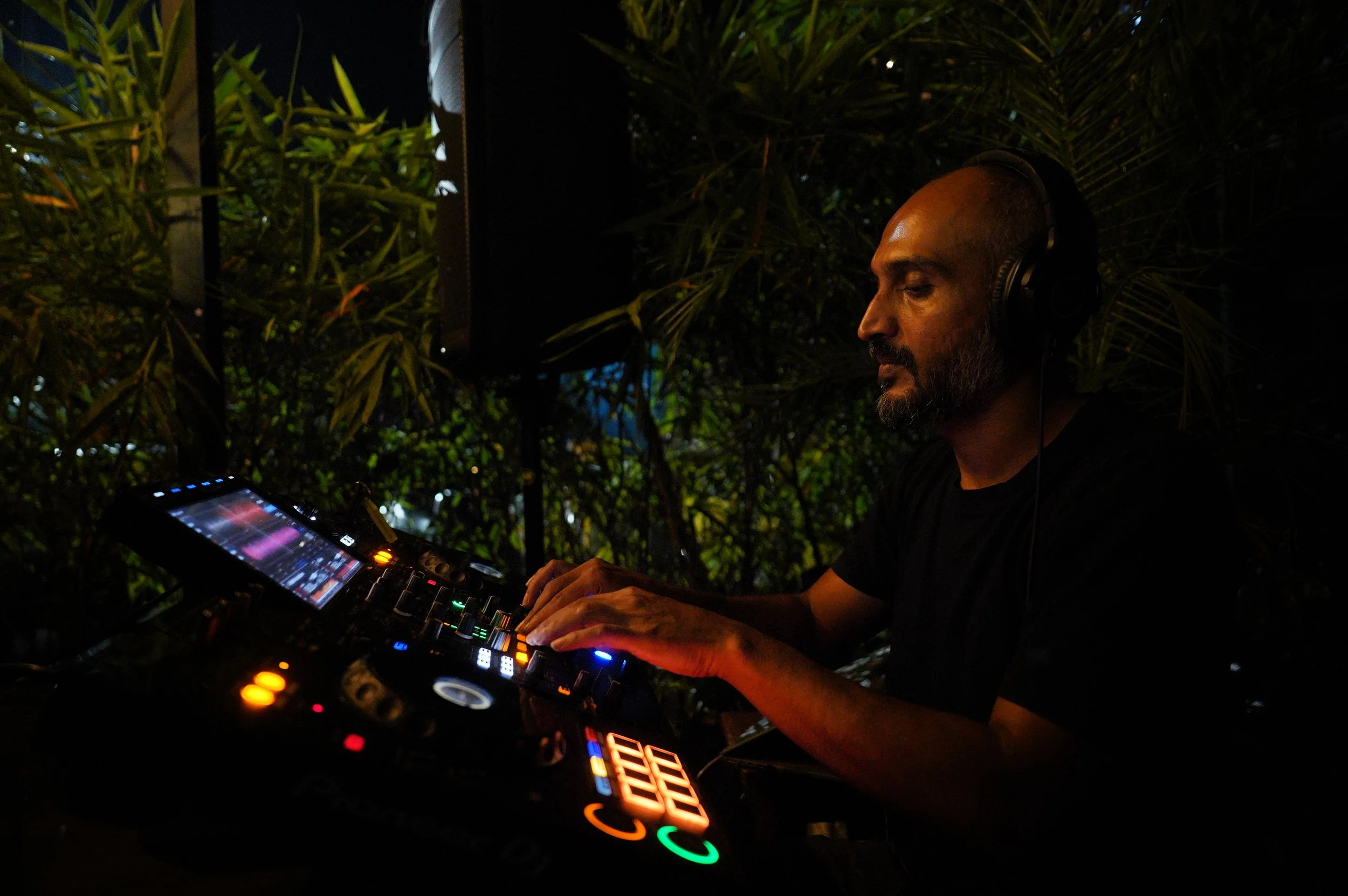 Electroson aka Akshay Hegde observing sounds for Mihir Sud’s Exhibition - Colour. Code. Cosmos.